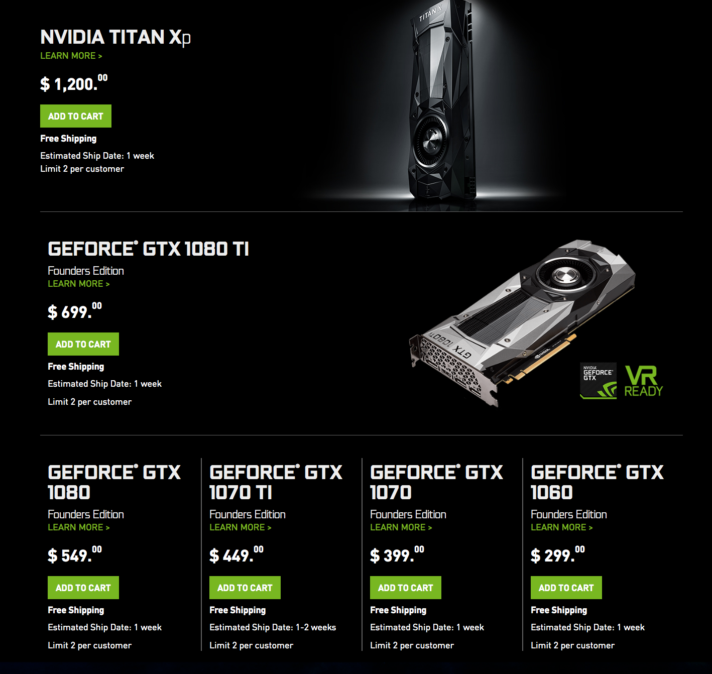 Head's up for anyone looking - NVIDIA will have stock of the GTX 1080 FE available tomorrow. I'm sure they'll sell out quickly, but no premium charge if buying from NVIDIA directly (should be $549). Works great with MacPro5,1 (and others) if you use a dual mini 6-pin to single 8-pin power cable and NVIDIA web drivers.