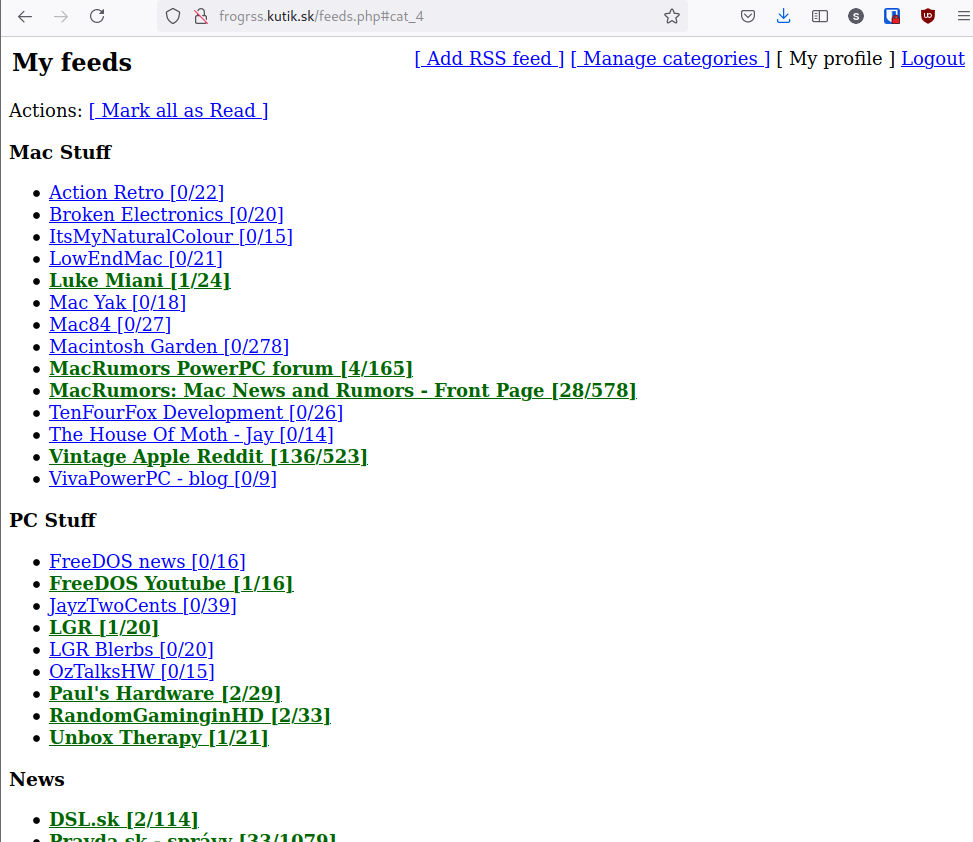 Based on ideas of FrogFind! and 68k.news I've built an full fledged RSS aggregator/client usable on and vintage Macs and very old browsers. I've successfully used it with Netscape 4.7 on System 7.5 .
