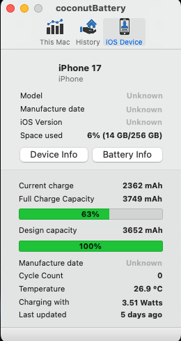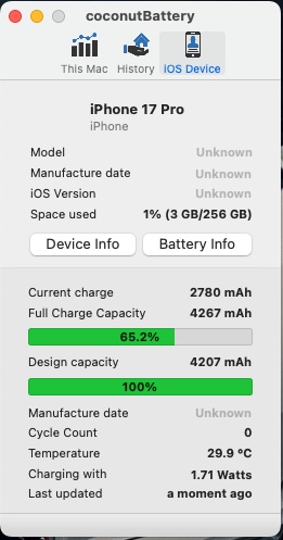 My 17 PM has 4.921 (103,2 %) full charge capacity whereas my iPhone 16 Pro Max had 4826 max. capacity (104,2%).