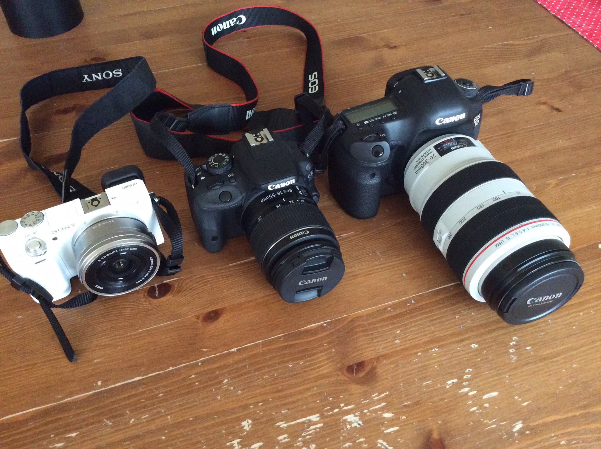This means that a Canon 5D3 with 24-70 and battery (1606 grams) weighs 25 measly grams more than a Sony A7 with 24-70 and battery (1574 grams). The 6D with 24-70 weighs less than either at 1485 grams. And that doesn't include the extra Sony batteries. The lens is the same length with 5mm smaller diameter on the Sony. So the Sony rig comes out slightly smaller and slightly heavier and a bit more expensive. Of course, with the Canon, you would have all that extra money you didn't spend, but you can put that on a debit card so it doesn't count against your weight limit.