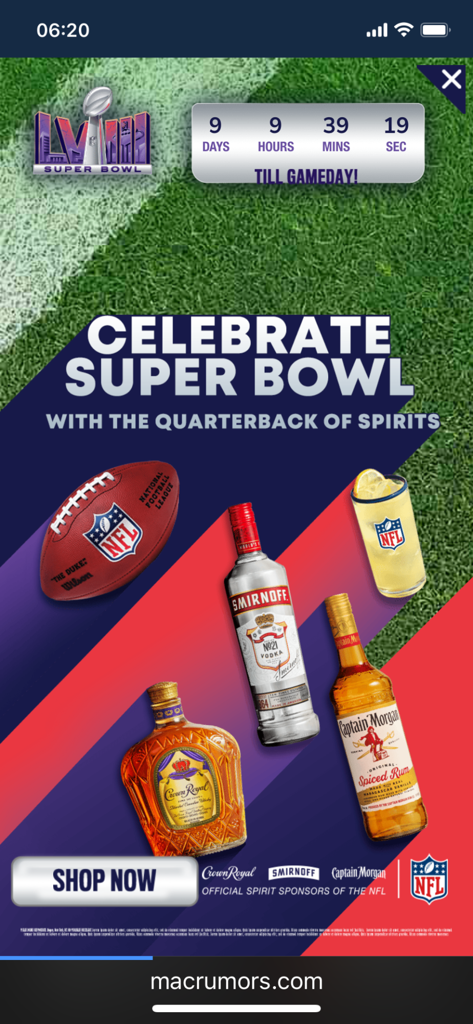 Not sure if this has always been a thing or just recent, but I just got my first full screen ad on MacRumors.com, about 2-3 seconds after scrolling down the homepage.