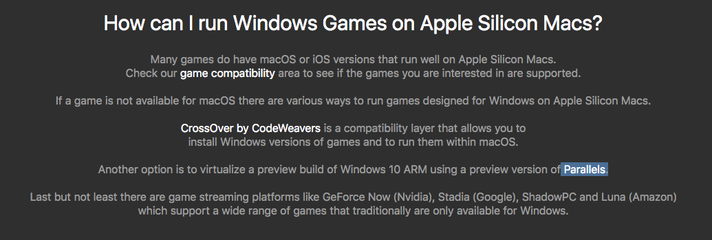 Now streaming is becoming a thing, and that imo will further hurt the Mac platform for native gaming. Why spend the money to develop a game on macOS when those people (and others) can just simply use a streaming service to play.