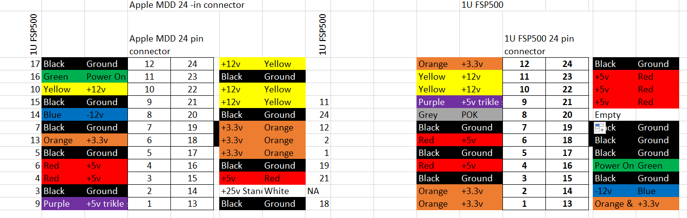 Just looking over the wiring connections to adapt to the MMD, the 24 pin connector is short of two 12v (yellow) and one ground wire (black), there are plenty of auxiliary connectors on the PSU to tap into thou, my only consideration is the 3.3v (separate orange and brown wire) sensor connection at position 13, I'm inclined to connect to MDD position 6, but i don't really know what 6 is connecting to, just wondering if there would be a preference between 6, 17, 18 or 19?
