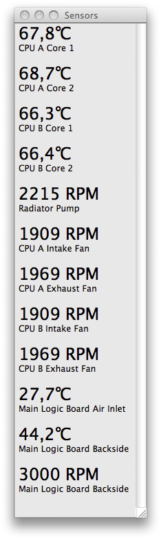 Temps a bit more even across the cores not hitting 70ºC with fans around 2.000, so still 1.600 below their max.