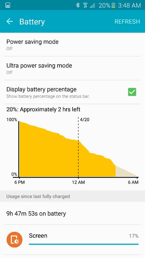 No...I get 8 hours on my iPhone 6, even with T-Mobile and weak signal in my area. Would love to switch to the s6 but this is why I'm still on the fence.Image