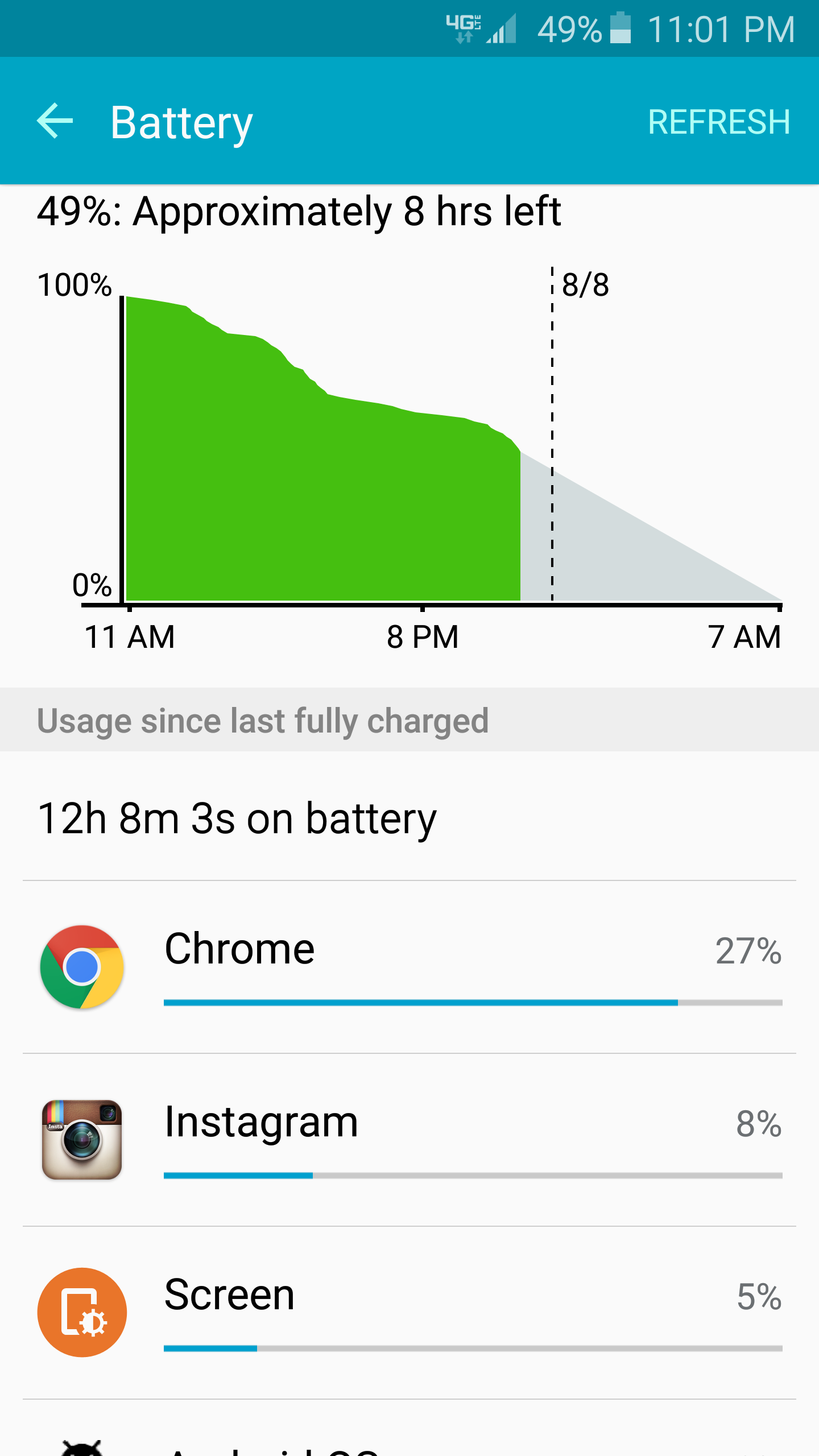 I get 3:30 SOT with mine in my crappy signal area being on Lte/3G all day (no wifi till the evening)