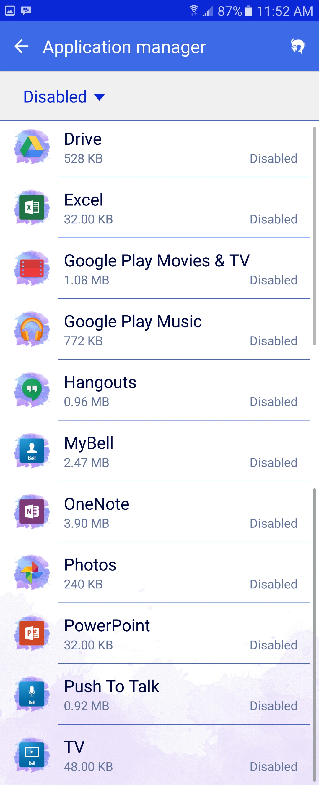 I am completely stock, running stock launcher with Exynos. I have brightness set to auto and slider at around 80. I think I'm not even gonna install Nova. I'm extremely happy with this version of TW. One thing I really missed when running Nova, is being able to have a full widget of S Planner. Now I got my full S Planner widget back with TW. I can say this phone is a keeper for me. And I most likely will be getting a Note 6 since I'm a big fan of that line. Here is a list of my disabled apps. As much as I don't care for S-Voice, I use voice commands for my camera. Can't do without it, so S-Voice stays enabled. I don't use always on, I don't see the point of it since I have security on my phone for a reason. Just for good measure, I should also point out I'm running Telegram, Whatsapp, Kik and BBM for messaging.