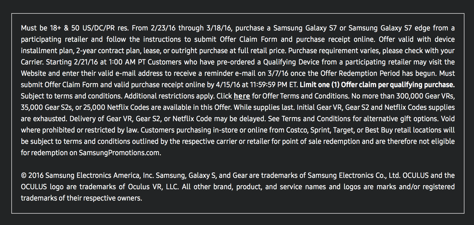 The Gear VR isn't that much to buy on it's own. My carrier wasn't doing the free VR deal anyway. They are offering some free bluetooth headphones and the deal doesn't end until the end of April anyway. They are offering a free upgrade after 12 months so I may as well jump on it.been so indecisive whether to switch my 6s to the s7 and was going to impulsively do it now but the VR deal is over and all of that extra goodies that come with the deal so guess I will stick with the 6s... I think the samsung gear S2 is pretty nice compared to the apple watch so wanted to change eco system for that reason too