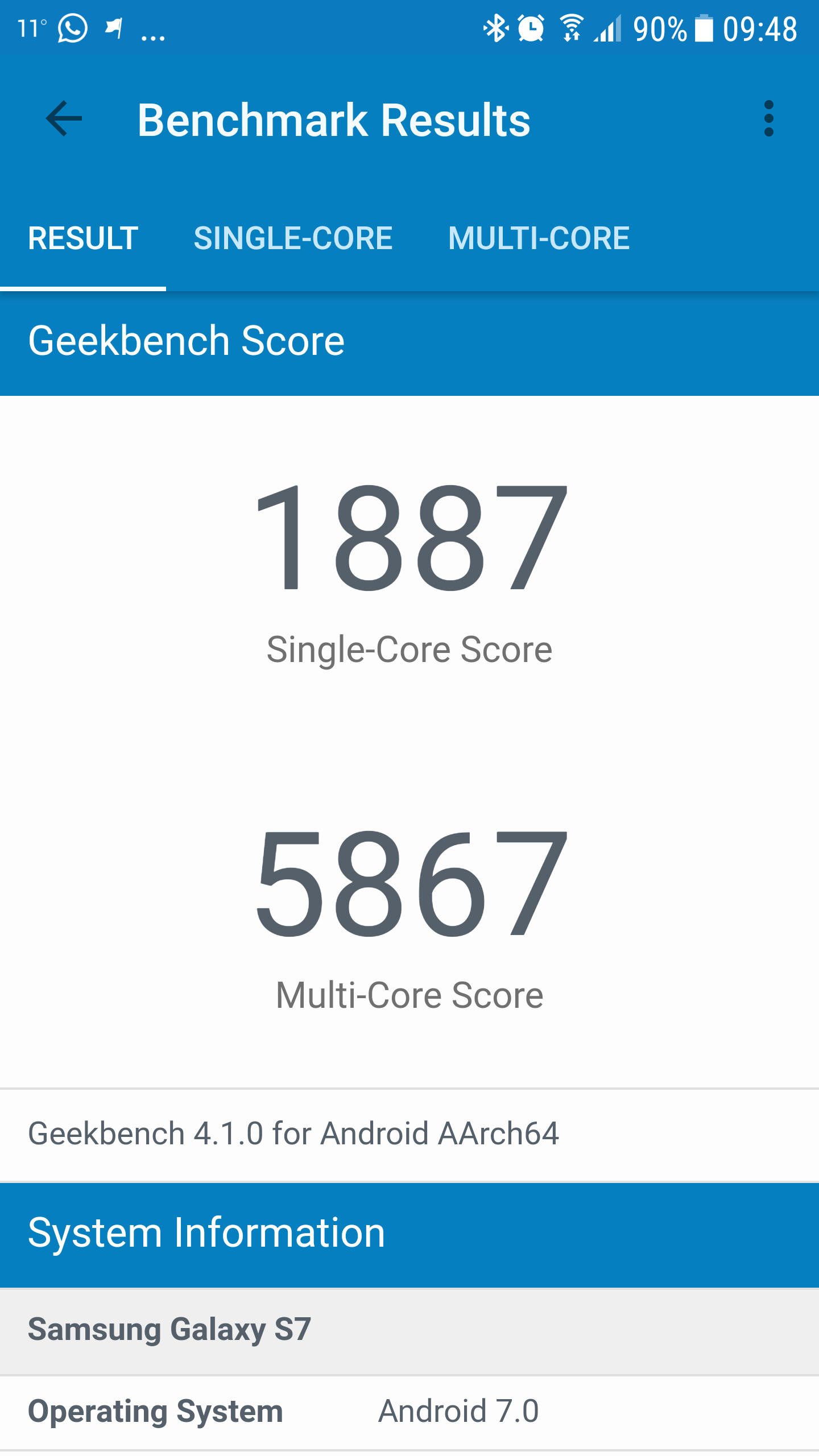 Anyone on 7.0, could you please run a geekbench score so I can compare mine? My phone has been getting slower lately, especially after 7.0, it's worse when waking up after a while. I've realized that my Note 5 feels smoother than my S7. I've even done a restore and it still feels the same. Here are some I ran today, the first two I let the phone sit for a bit to cool down, and the 3 is after clearing the cache and restarting. Thanks.