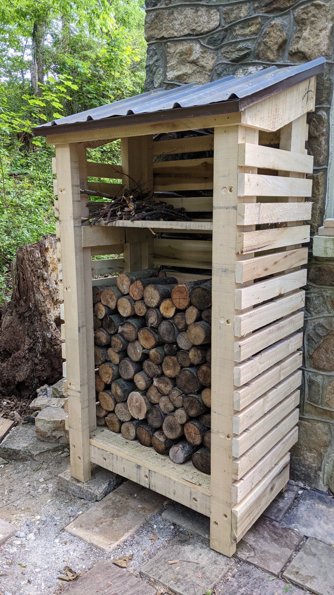 Nice. I’m storing my fire pit wood in the garage. This looks like a much better solution.Finally got a little wood shed built for the fire pit area. Some work is still needed like the 1x6 to face the front and cover the cut ends and lag holes etc... We have a nice local sawmill that basically cuts what you want within the week you order it, how lucky. All other materials were just left over or recycled.