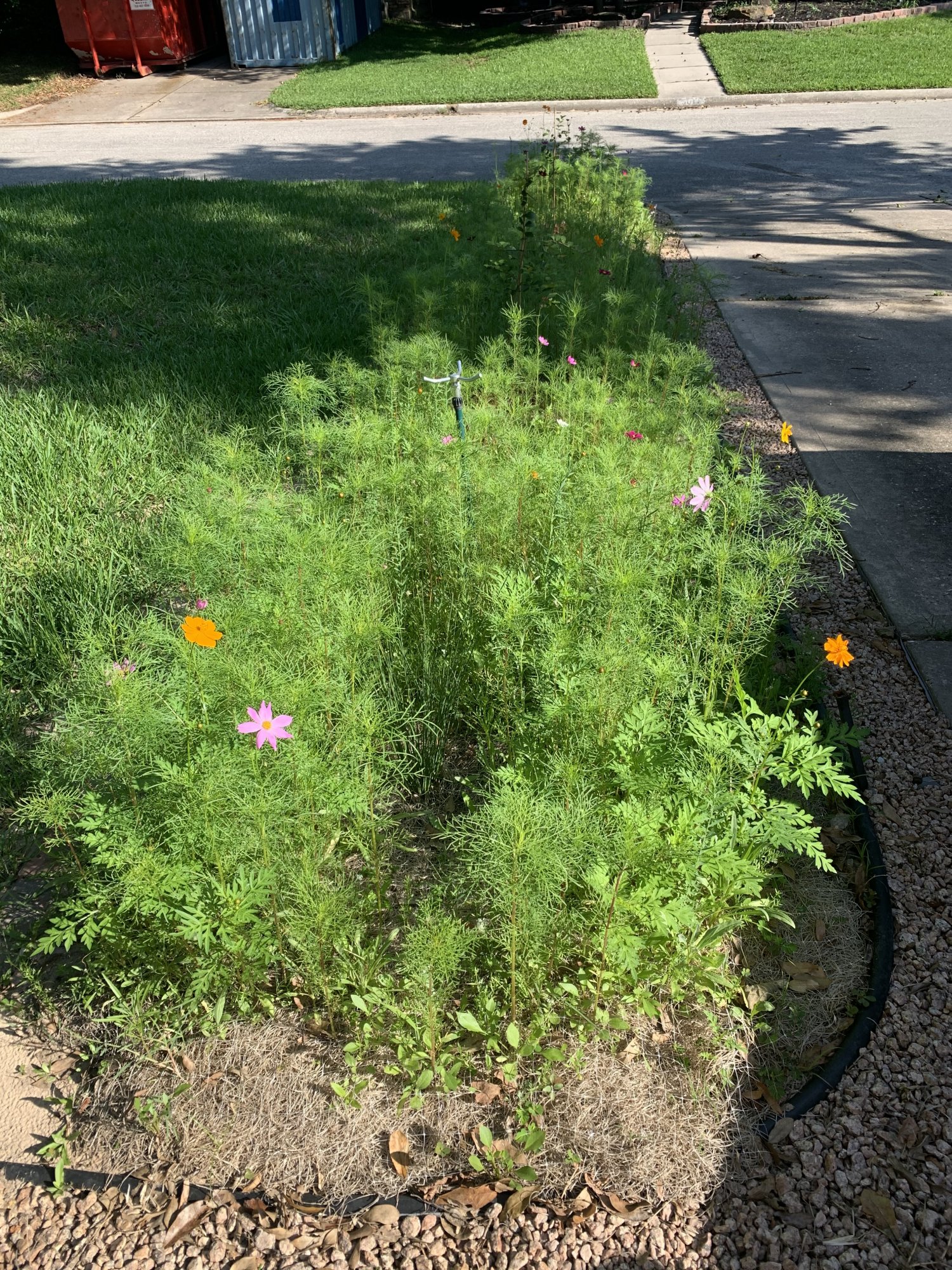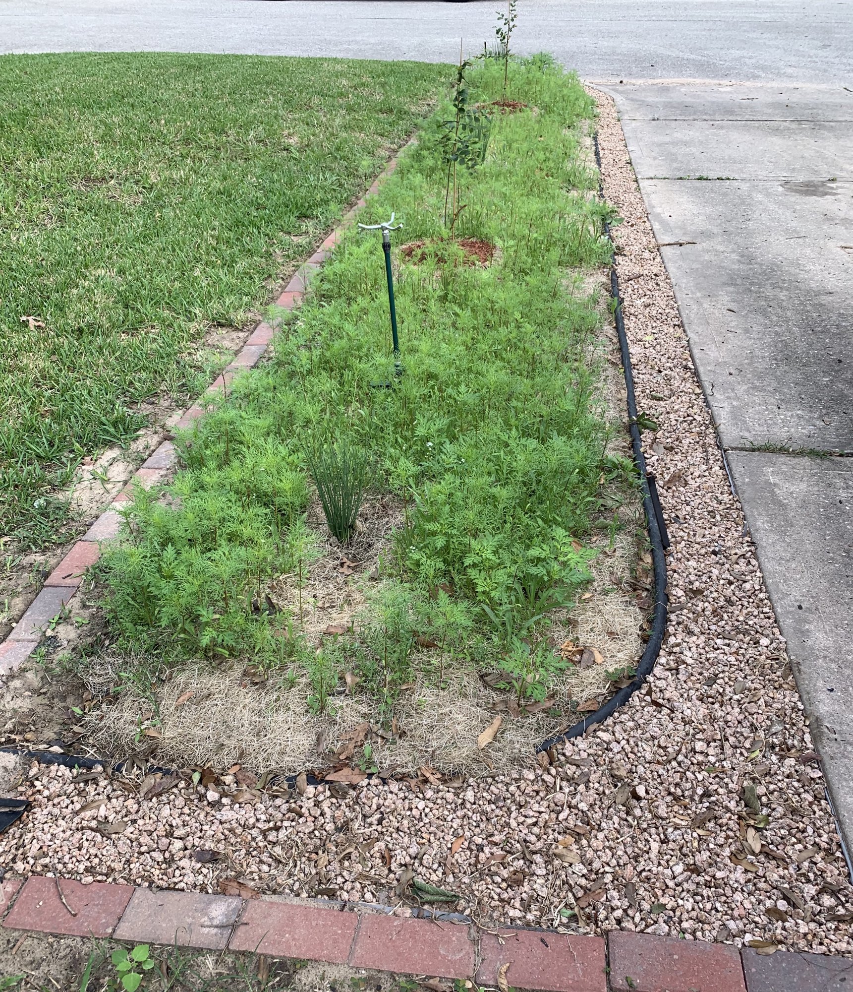 Wild flower bed update. Right now it looks like a bed of overgrown weeds. Waiting on flowers to start popping.