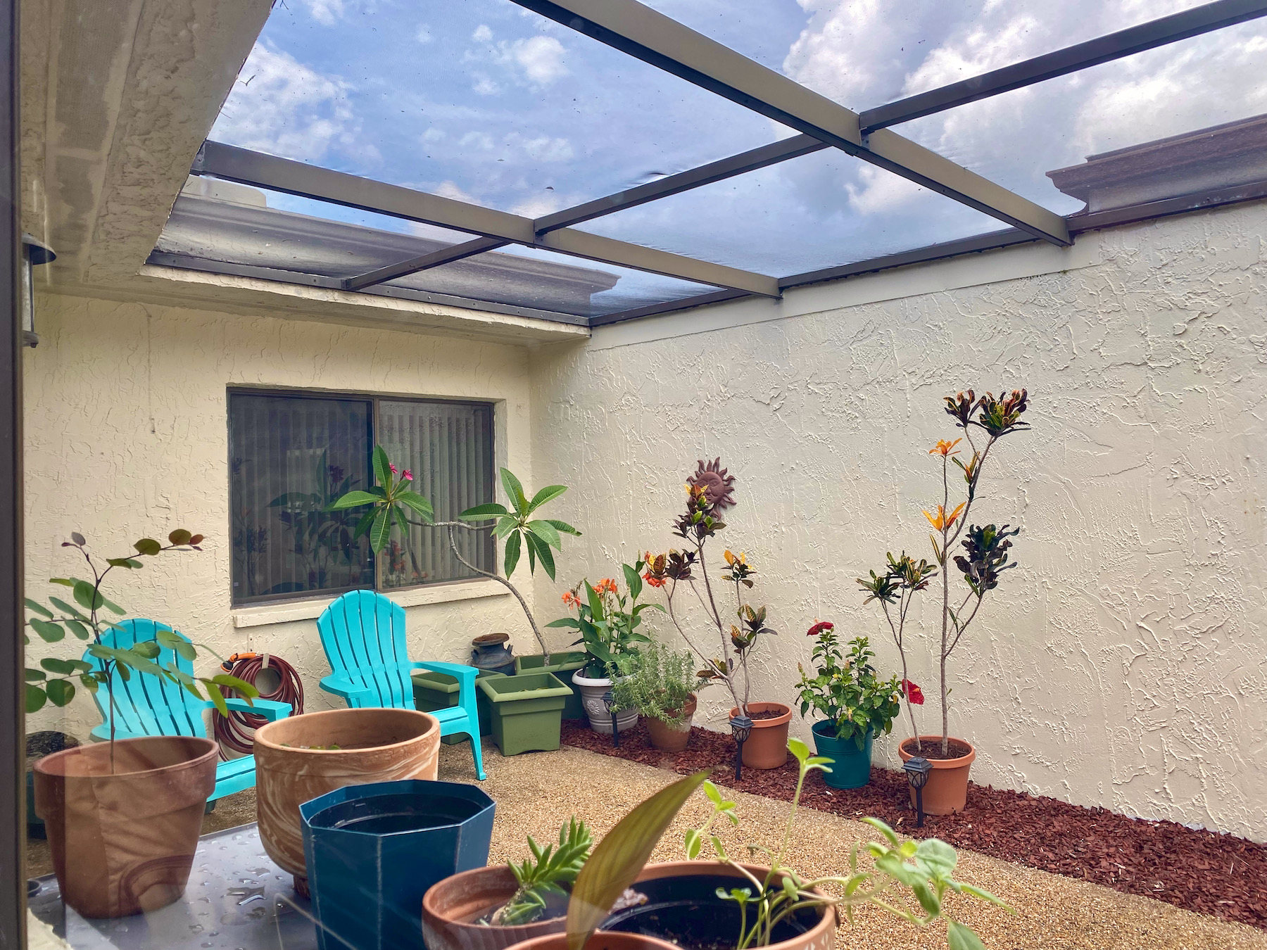 I like your patio.....but what's the "roof"?I've been busy planting pots around my patio garden.