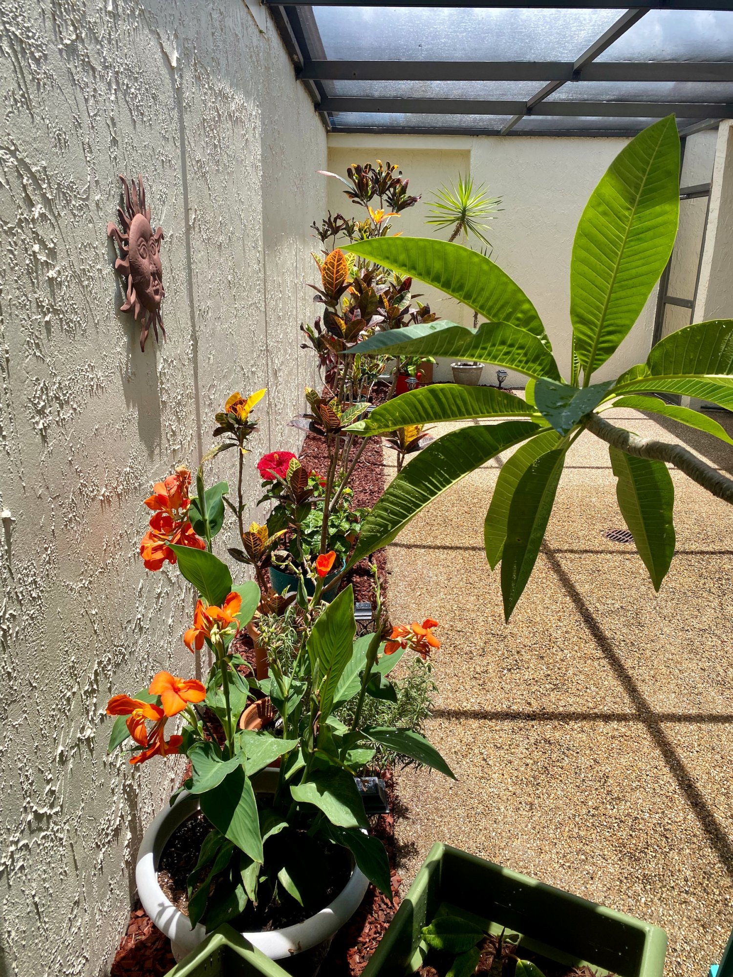 I've managed to get a red canna lily to grow from a seed. It's in the planter on the left.