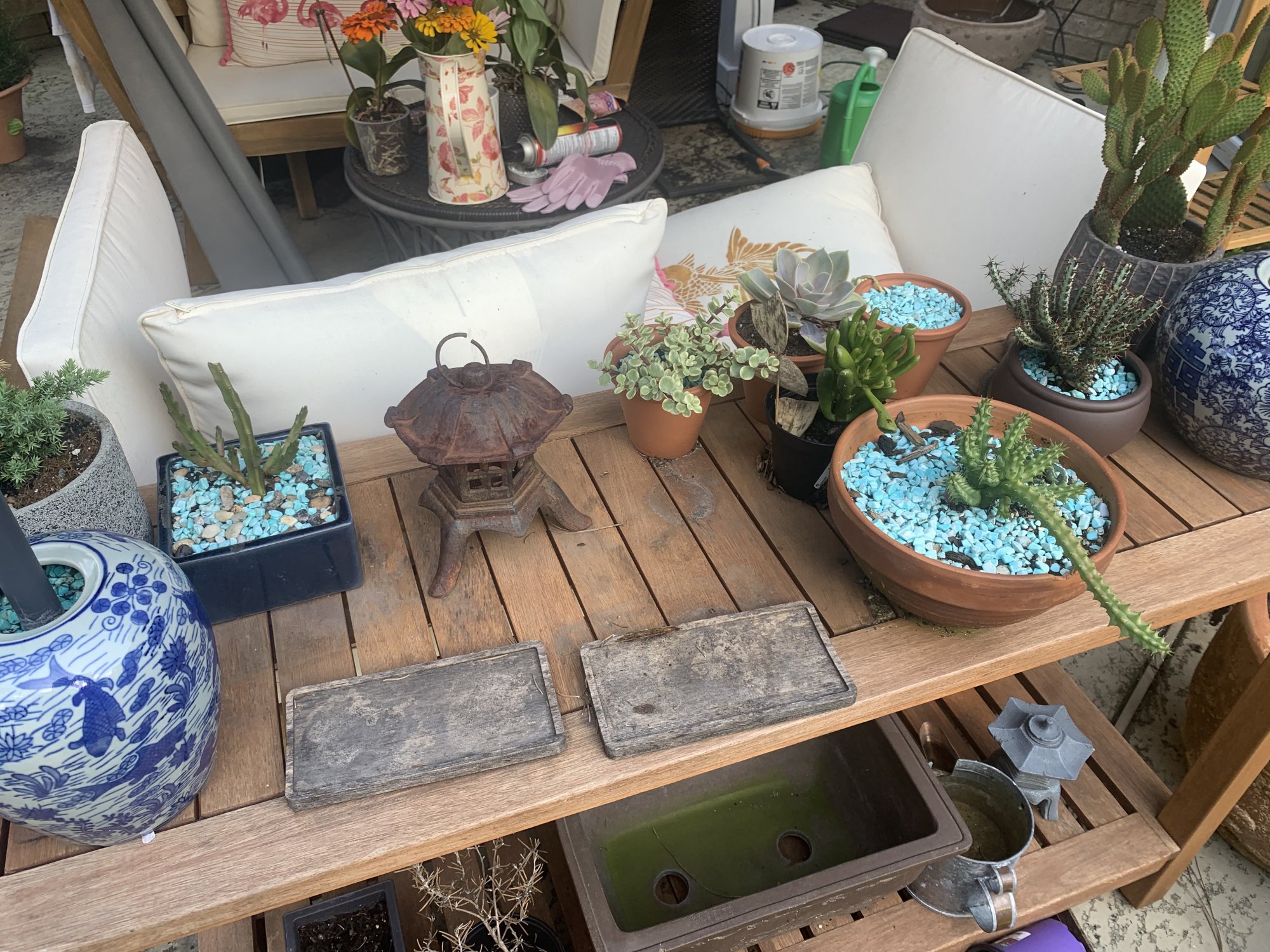 Then there are these small hanging baskets which are at the mercy of the Sun. We are relying more on succulents, than in the past.