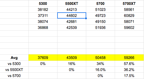 5700 to 5700xt 16gb: approx 11.3% gain