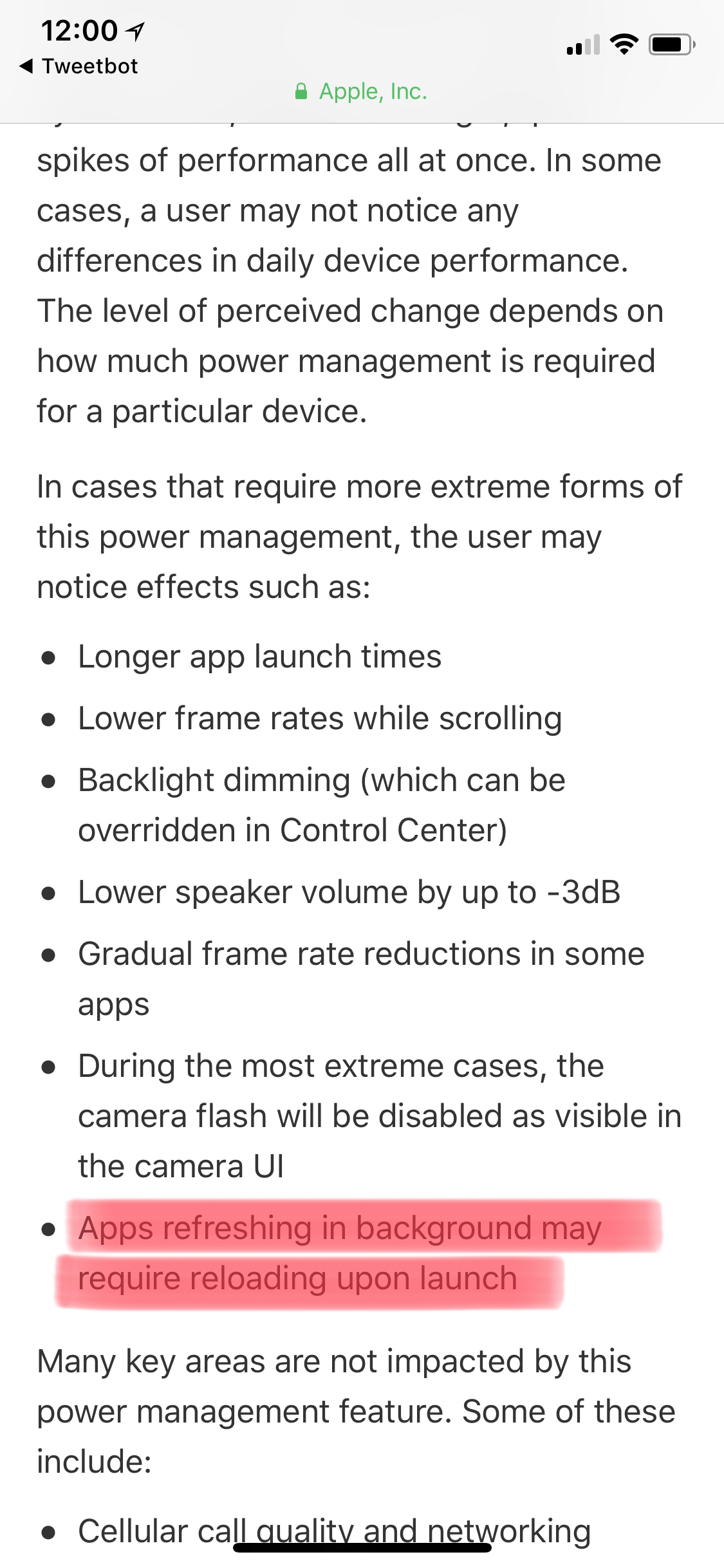 But poor launch speed on older devices with newer iOS updates is another big issue that I brought up here (that's off topic in this thread), in addition to the throttling the CPU with defective batteries and refusing to replace them while still under warranty if they're over 80% capacity. Combine the poor launch speed with a worn battery that these older devices often have, and the problem is multiplied.