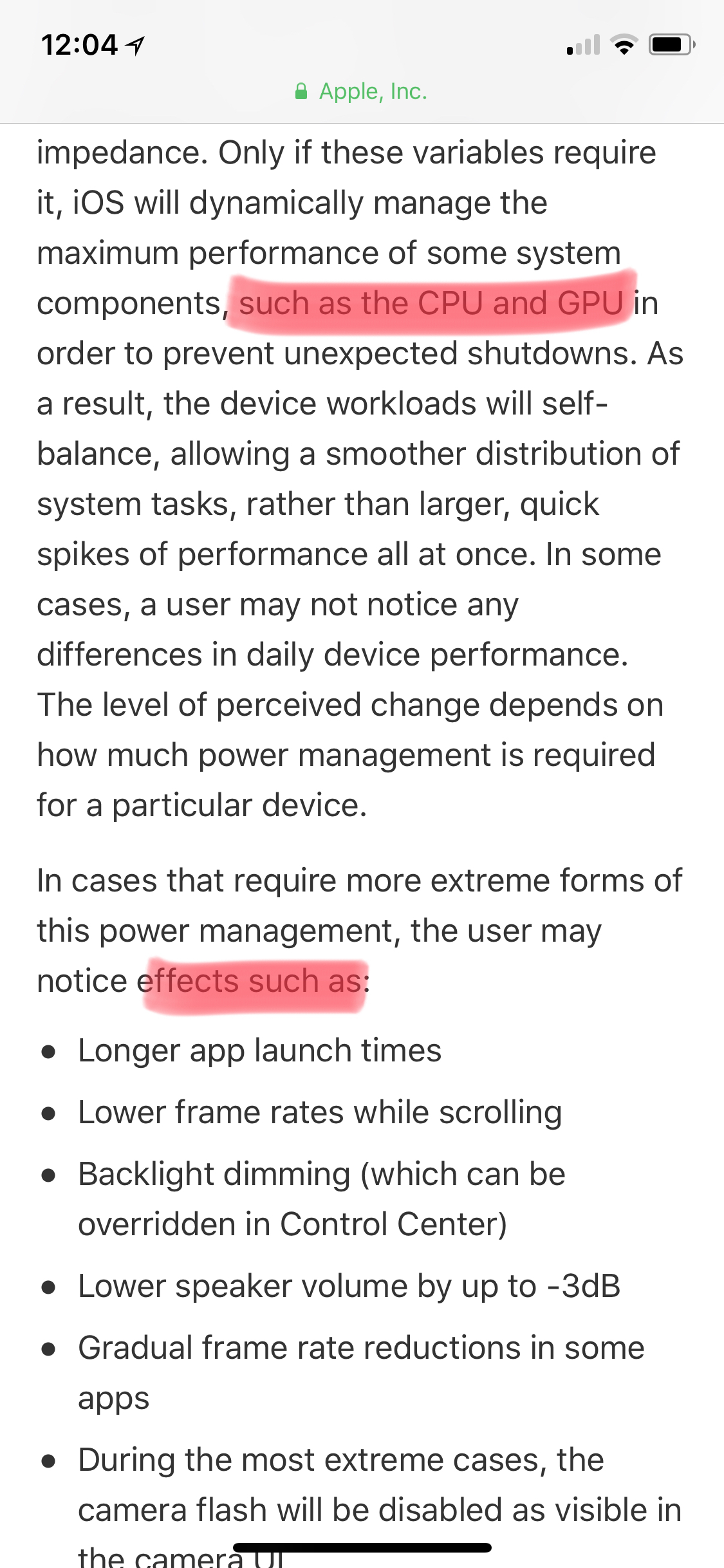 Apple said CPU and GPU are not the only components being managed (read throttled).