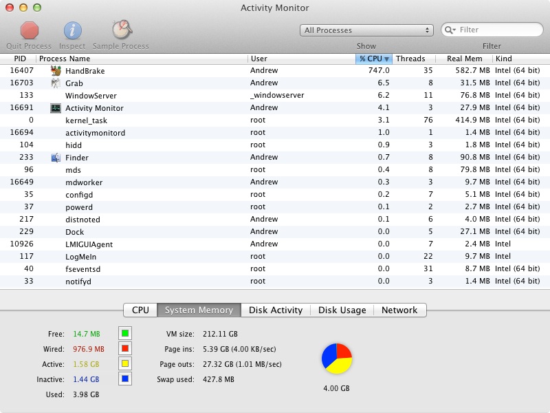 64 bit results of mini server with 8GB ram on OSX Lion: