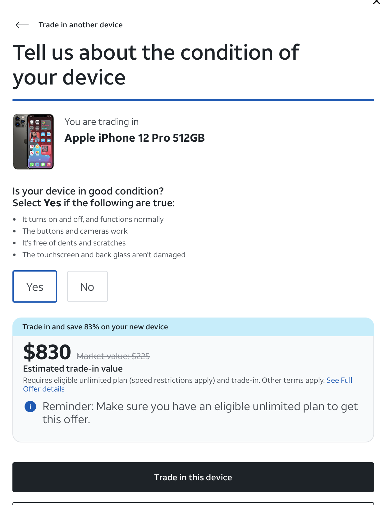$800.00Total trade-in credit for: iPhone 13 Pro