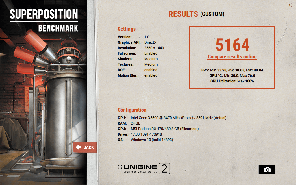 I then proceeded to raise the GPU clock from 1340 to 1360 while keeping the mV at 1100. That needed me 47.1 FPS, highest FPS yet.