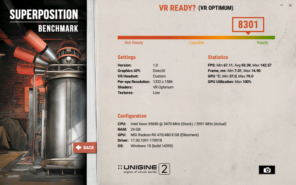 HTC has a superb bundle deal with the Vive that includes the GTX 1070 (and FO4 VR) and I jumped on it. I was thinking to simply just sell the GTX 1070, but I think I will eat my money and try it out on the cMP.