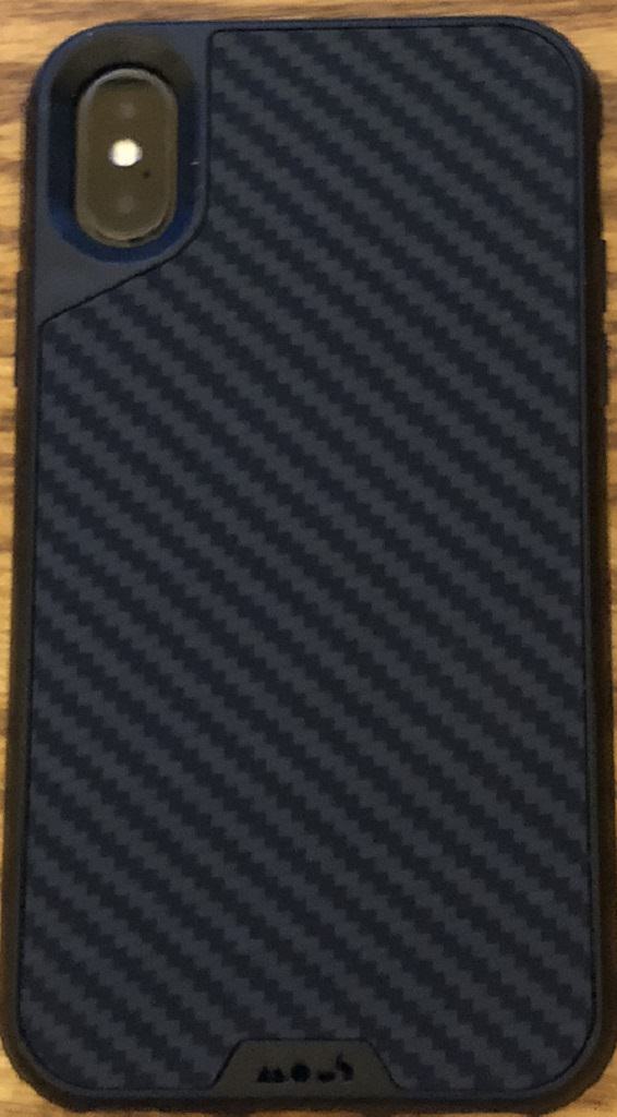 iPhone X Apple black leather case - had to video a speech my daughter gave for a college class today. I used a mini-tripod and the smartphone holder.