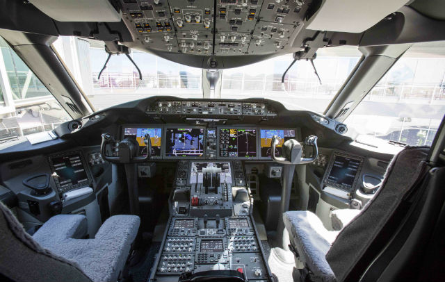 And here's a modern 787 Dreamliner, with touch screens reducing the number of buttons and dials by 90% or so