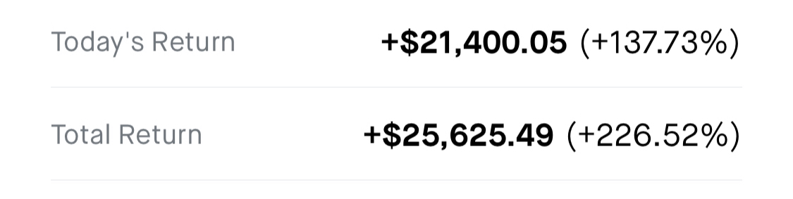 My play account is only worth a little over $9k at the moment. Your account must either be worth a substantial sum or you went balls to the wall YOLO haha (and not the ticker).