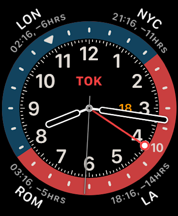 It's unfortunate the bezel isn't rotatable (i know that's software), but that would be another city.Wow. This is an ultimate world clock watch face. You can have in total 6 cities time on one face.