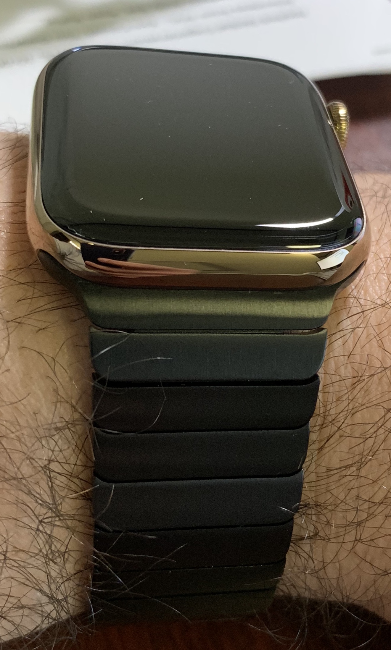 It looks quite good. I'm reconsidering using the SS Link with the gold. It's a brand new OEM Apple bracelet and I'd hate for it to go to waste.