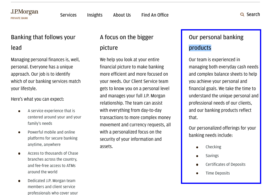 Our Client Service team reaches you on a personal level and manages your full J.P. Morgan relationship, looking at your entire financial picture to make banking more efficient and more focused on your needs.privatebank.jpmorgan.com
