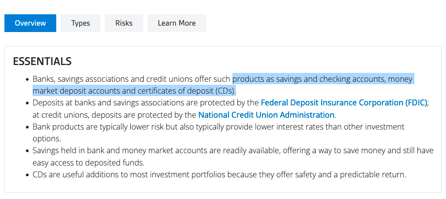 FINRA provides essential information on bank products like savings accounts, CDs and money market accounts. Learn more and make informed financial decisions.www.finra.org