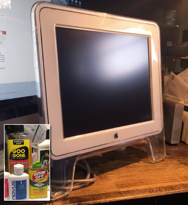 Cleaned a G3 iMac and this ADC monitor with Goo Gone this morning and experienced no fogging, clouding or melting on any of the surfaces. *And of course, always test on a small area first.