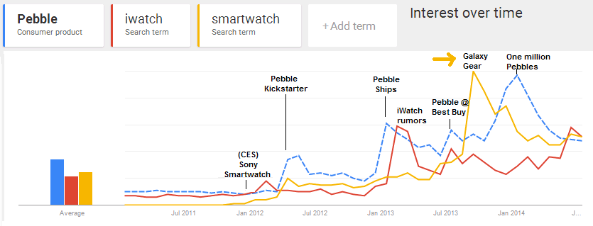 But as the search history shows, people did get interested in the smartwatch after the gear. Then they stopped. Apple bought that interest back. That's all I believe max(it) was saying, although if he'd like to clarify that would be best. Who knows I may have misunderstood him myself.