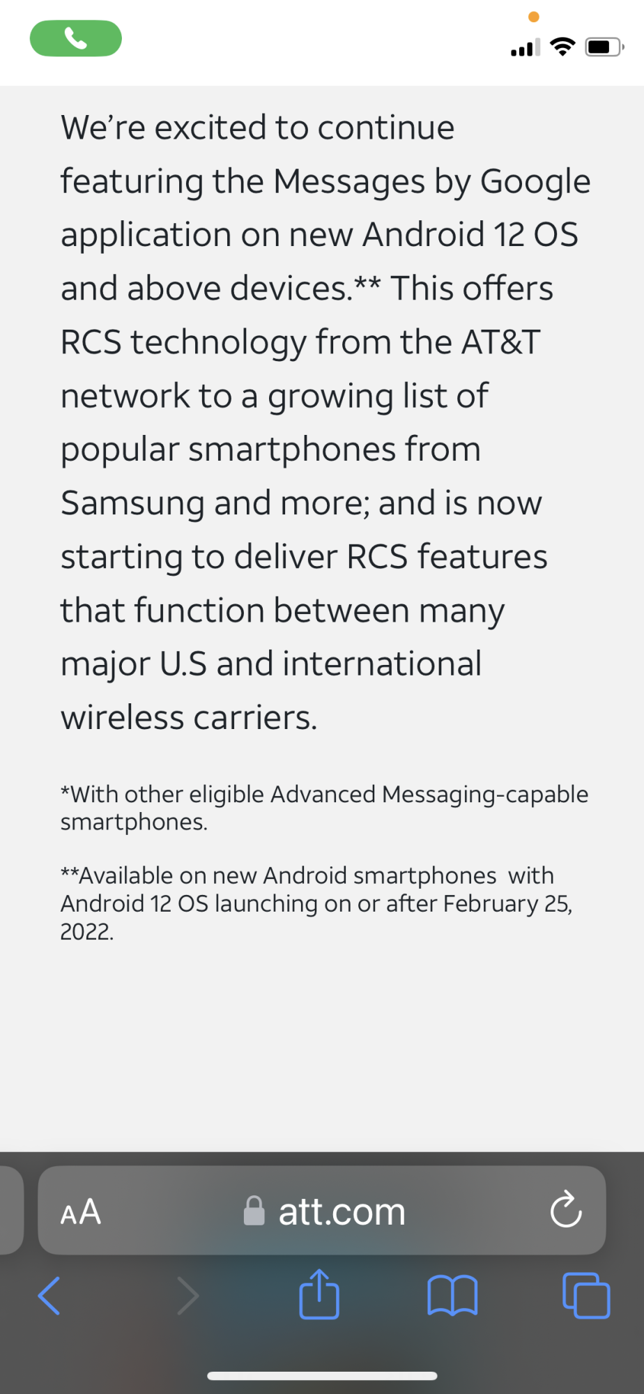 “The Advanced Messaging enhancements being introduced to Android smartphones adhere to RCS standards. AT&T has made a number of network updates to support Advanced Messaging. We continue to bring RCS to devices within our network, and
