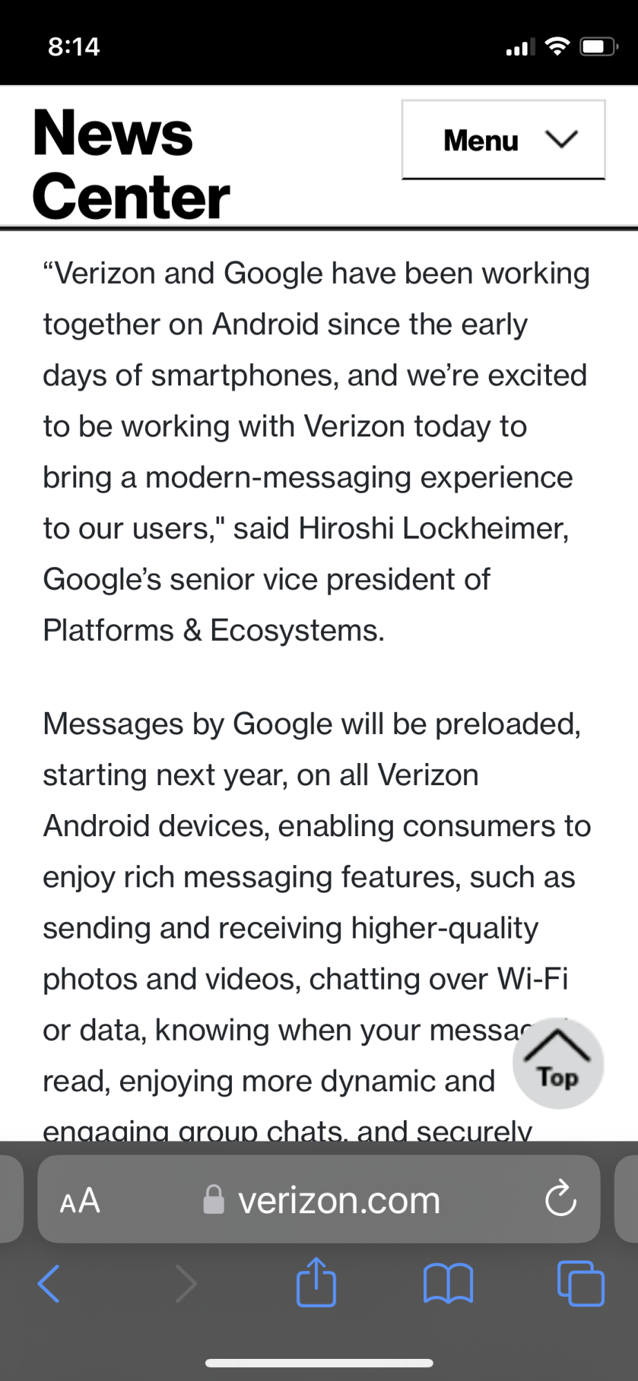 Verizon announced a collaboration with Google to expand advanced messaging services to Android users in the U.S. starting next year using Google’s Android Messages app.