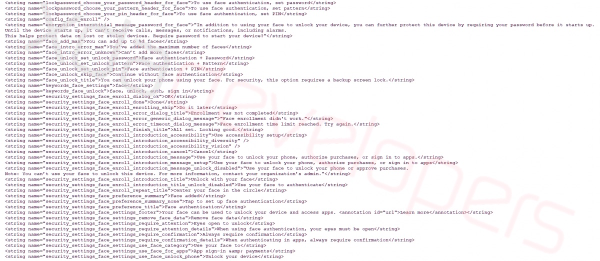 Android Q code referencing a secure face unlock system. Click to enlarge.