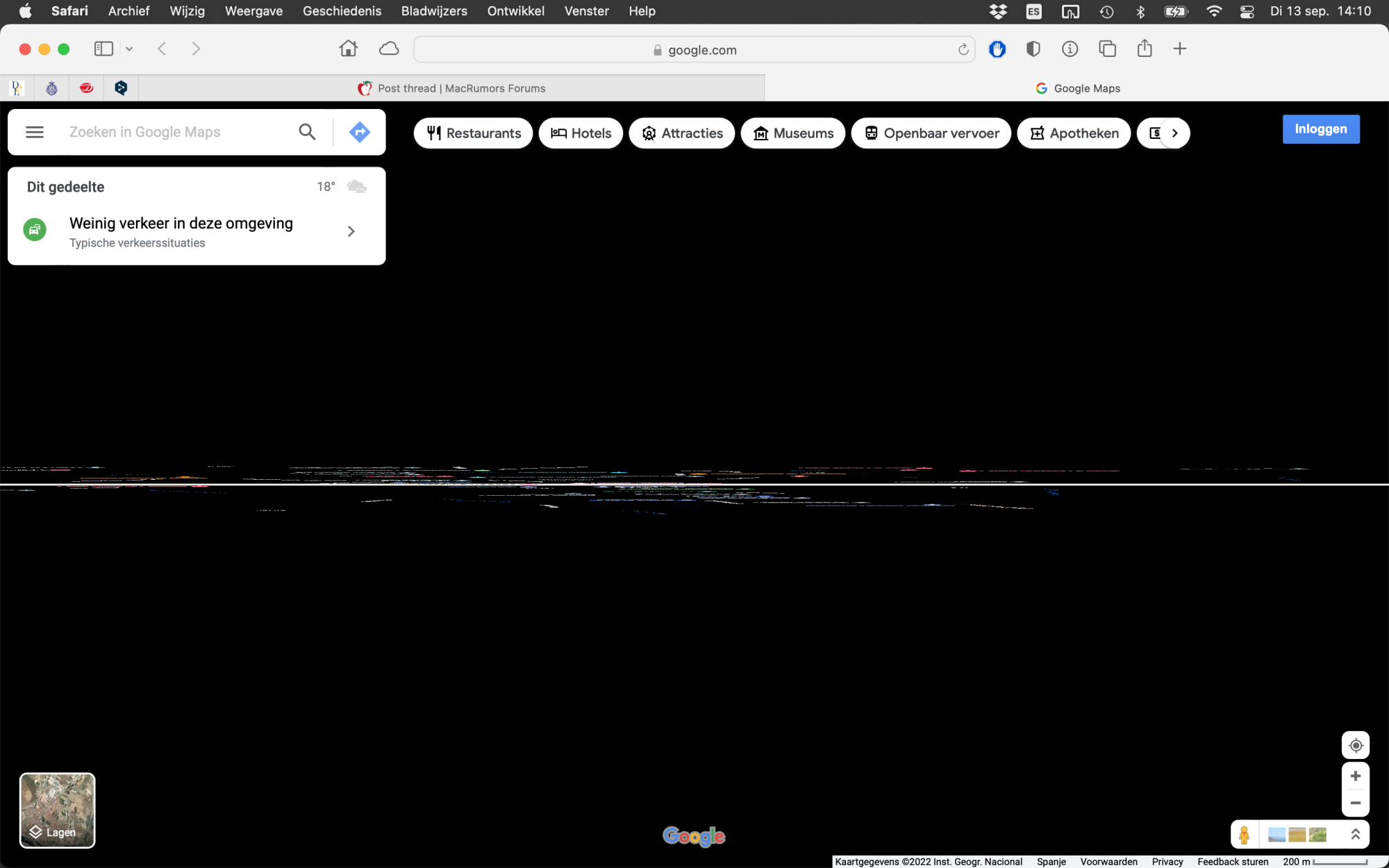 Settings > Battery > Automatic Graphics Switching unchecked. Gmaps becomes functional on Safari 16.0, but with considerably more heat.