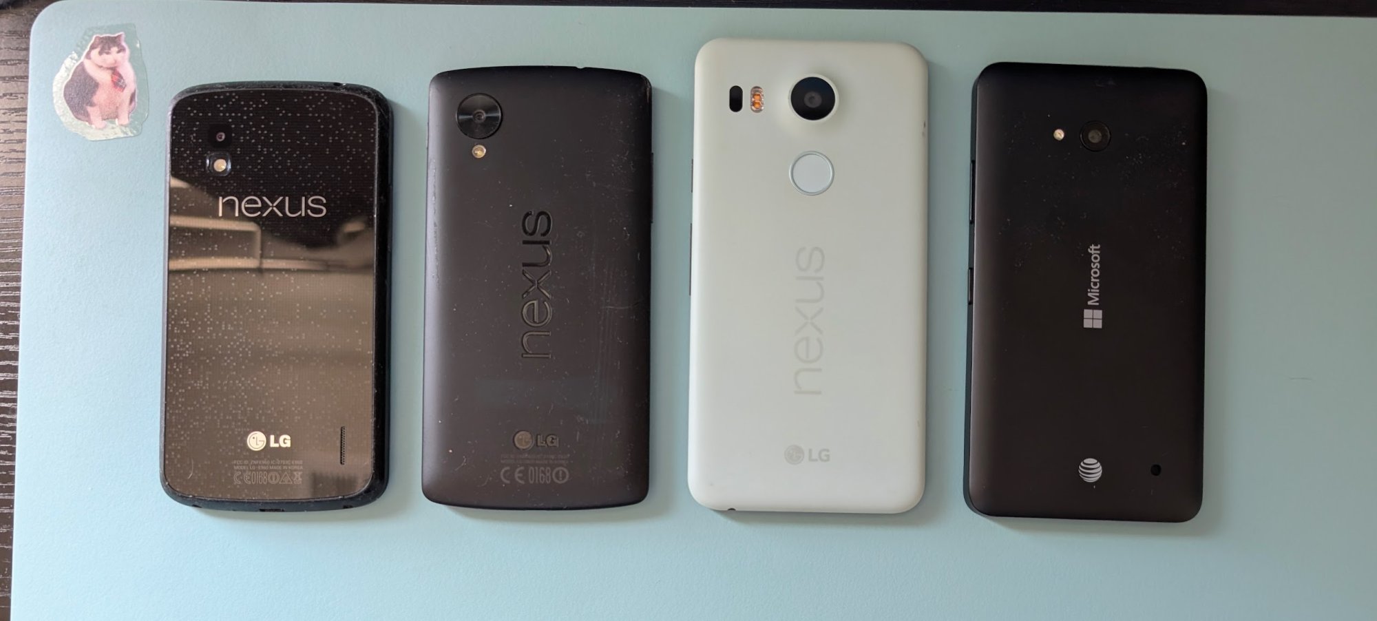 Nice collection you have there!Posting this here since you all might appreciate it. My collection of old Nexus devices (and a bonus Windows phone). We've come a long way, but these phones hold a special place with me. The Nexus 4 was my favorite design. These are probably going to start my home on fire at some point, but I can't part with them.