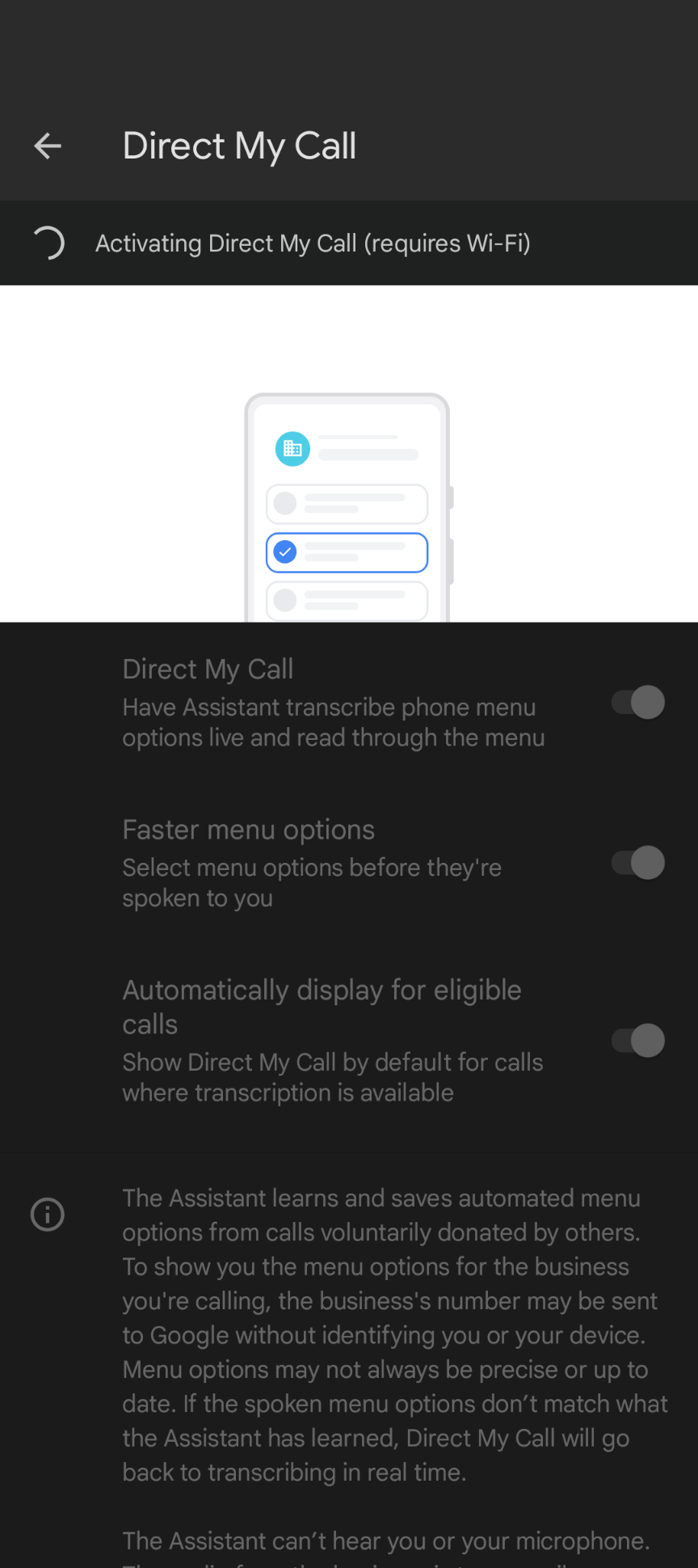 It works for me, try force closingthe phone app and reopening, or restartingAnyone else in the UK not able to get direct my call working? It's just sits "activating" in the settings.
