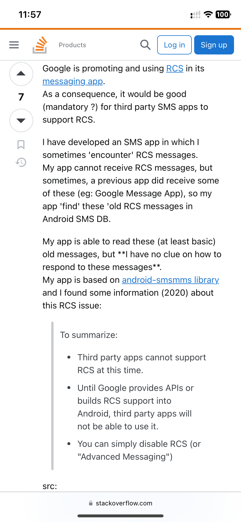 Much like android itself, RCS is fragmented. Some phones have it. Some don’t. Some use googles method. Some don’t. Which leads to incompatibility and unreliability. Which will be hilarious when apple uses RCS.