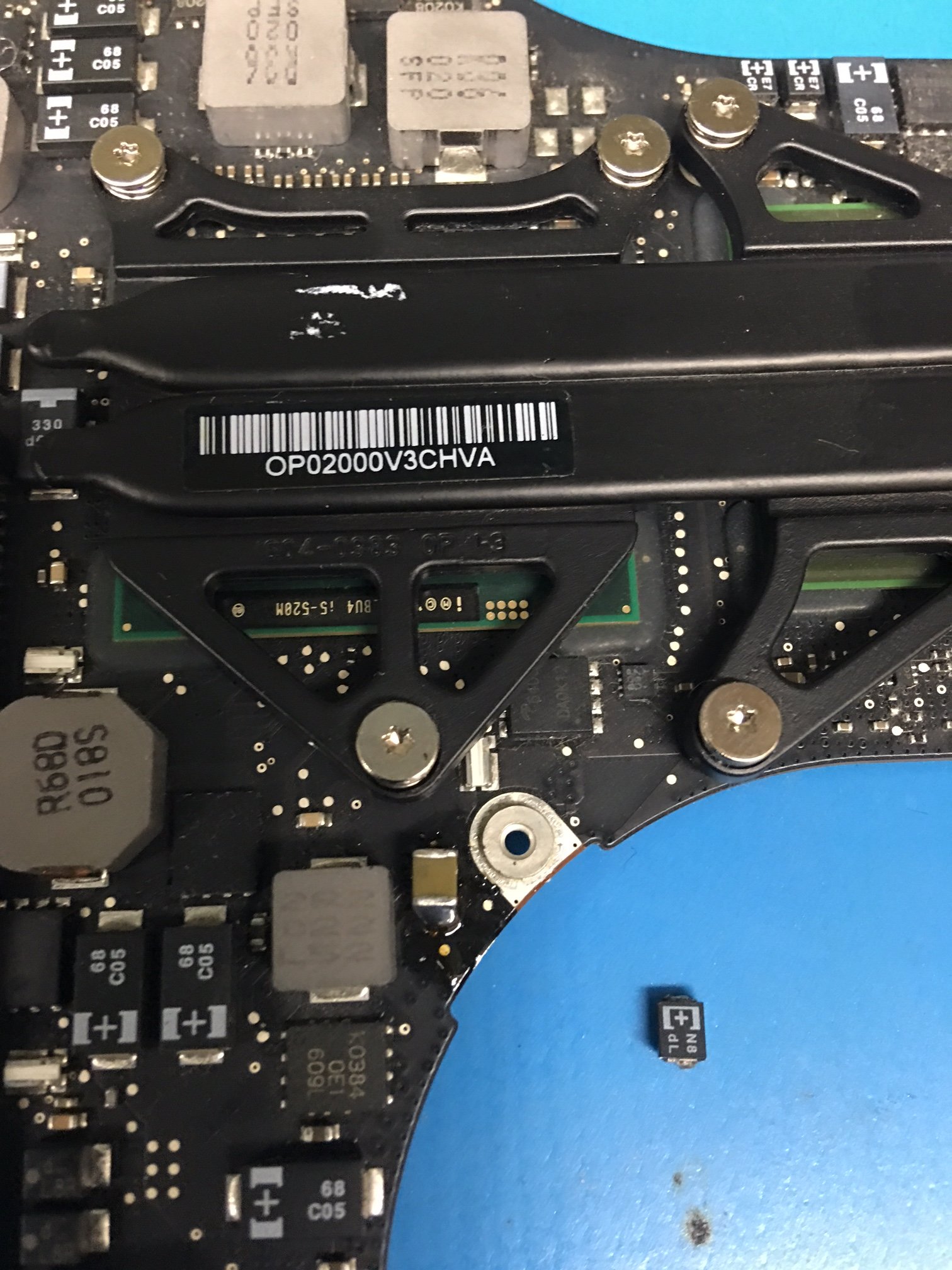 I was originally going to replace the capacitor but i didnt realize until it was too late that the capacitor is on the other side of the logic board, meaning the whole logic board will need removed