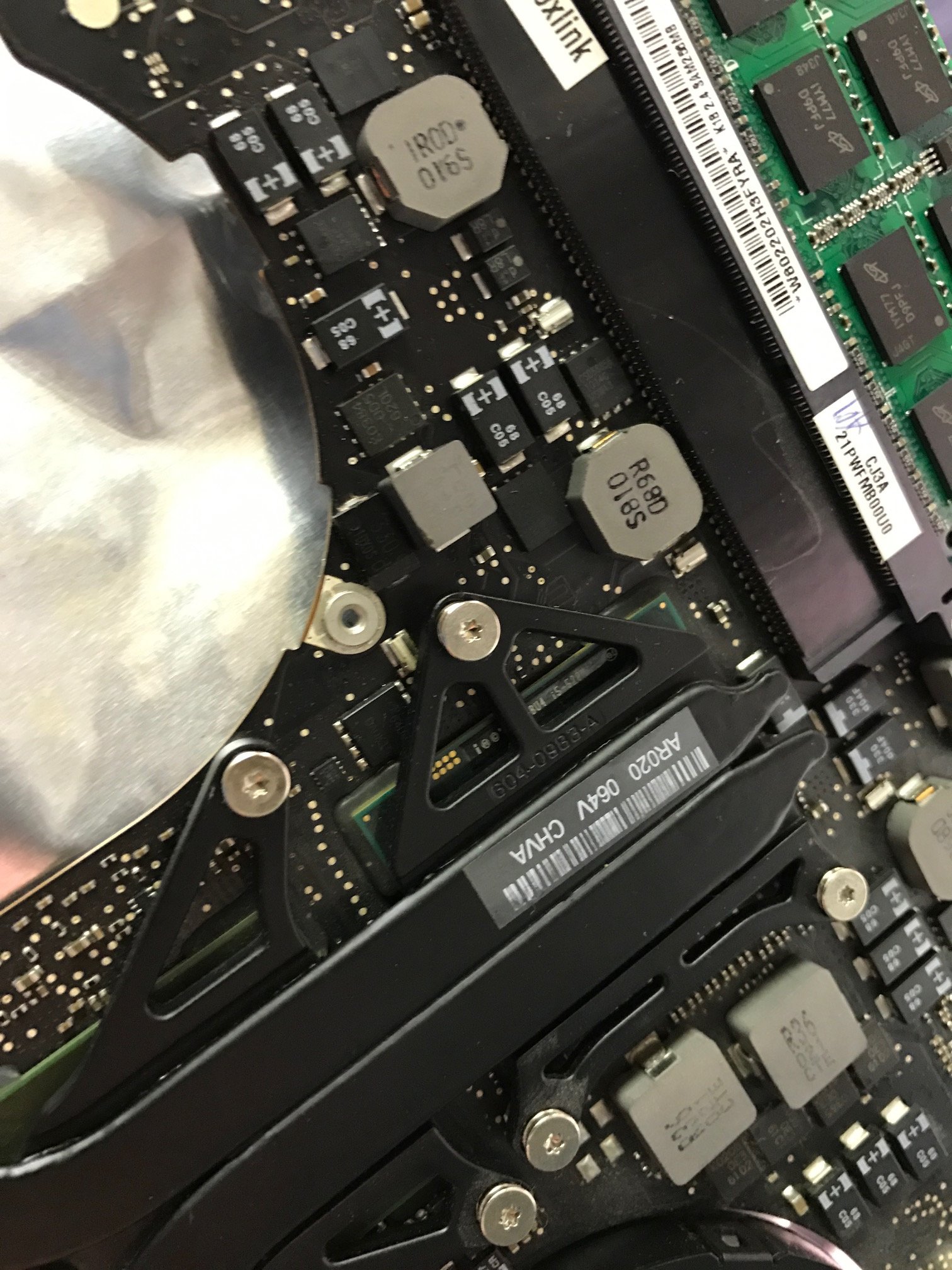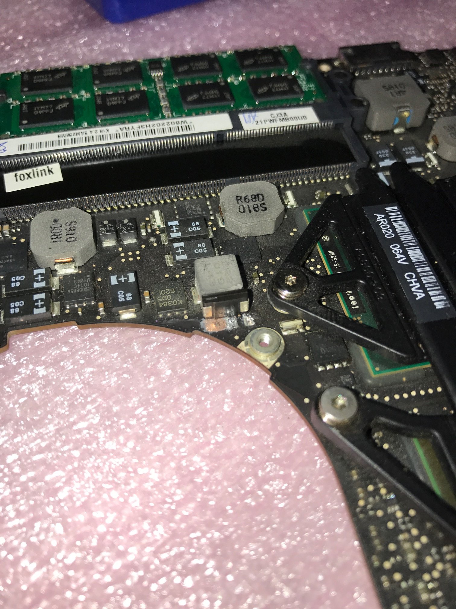 +"japasetelagoas" Reballing is constantly being recommended by the dumbest of our industry, with no brain. Make sure to go back to those places where idiots suggest that and credit me with calling them an idiot.Replace C9560 with anything but a tantalum kind. Apple made the same mistake they made with the 820-2610 and 820-2330 where they ran out of space on the motherboard for C7771 so they made it a tantalum one. This is not suitable for a rail that is always on, as C7771 is for an S5 rail - so it dies. Voltage fluctuates, and eventually the machine stops turning on. On the 820-2850, that same 330uf tantalum capacitor re-appears on the framebuffer power supply for the GPU and the VRAM. The reballers without brains are heating this capacitor when they heat the board to remove the chip, so what happens is that they think they fixed it when the capacitor works again post heating! But it dies again when the cap F's up again. The proper repair is to replace C9560 with a non-tantalum one, which won't fit! You will have to scrape the board's ground pad to make this fit. It is doable.