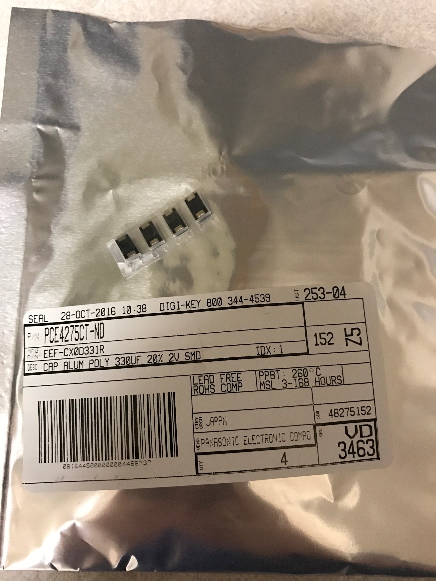2. I extracted non-tantalum 330uF Capacitor from the macbook pro mid 2012 broken motherboard, it's bigger than the tantalum one, but thats no problem
