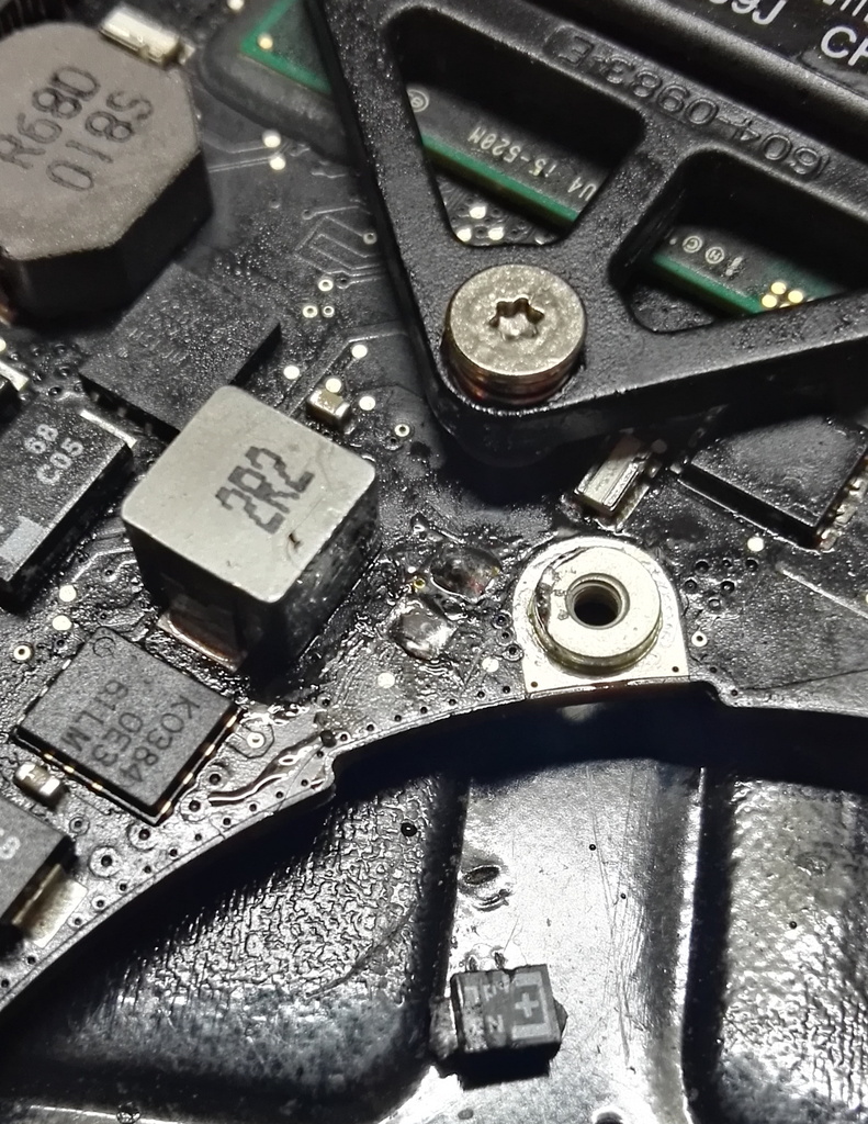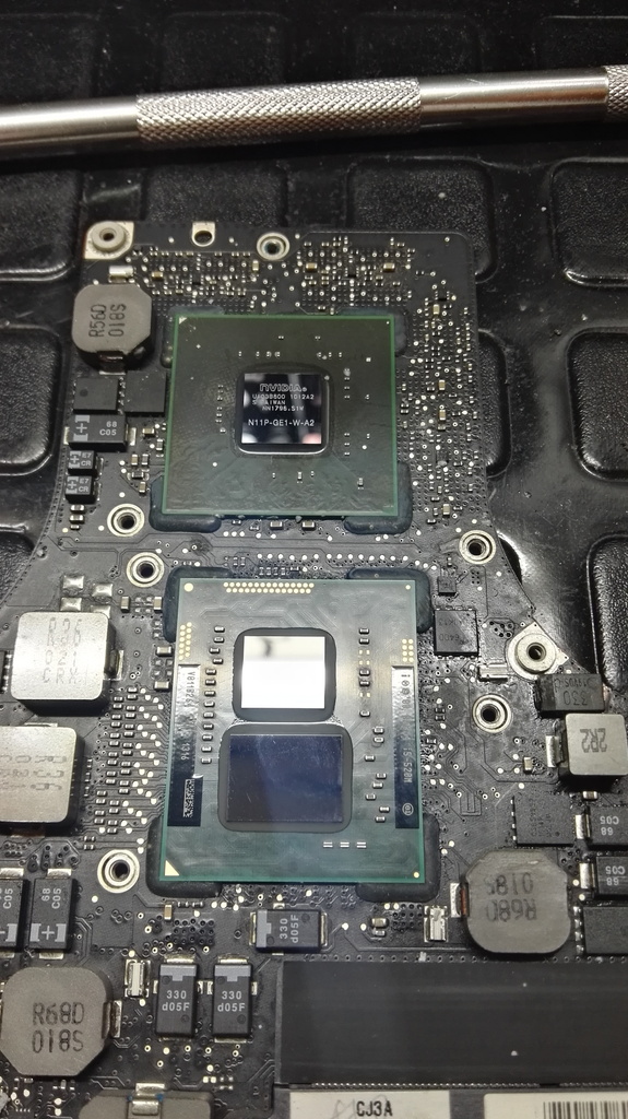 now MACC2D sed i he got a 330uf from a macbook pro mid 2012 motherboard, and am asking where he found that 330uf on that mid 2012 motherboard, i have one mid 2012 motherboard too with water damage too. but i can't find that 330uf capacitor anywhere, so my question is, where did he find that capacitor in mid 2012 moherboard. am not saying i have the video problem o that MBP i know fix is for mid 2010 nvidia problem.