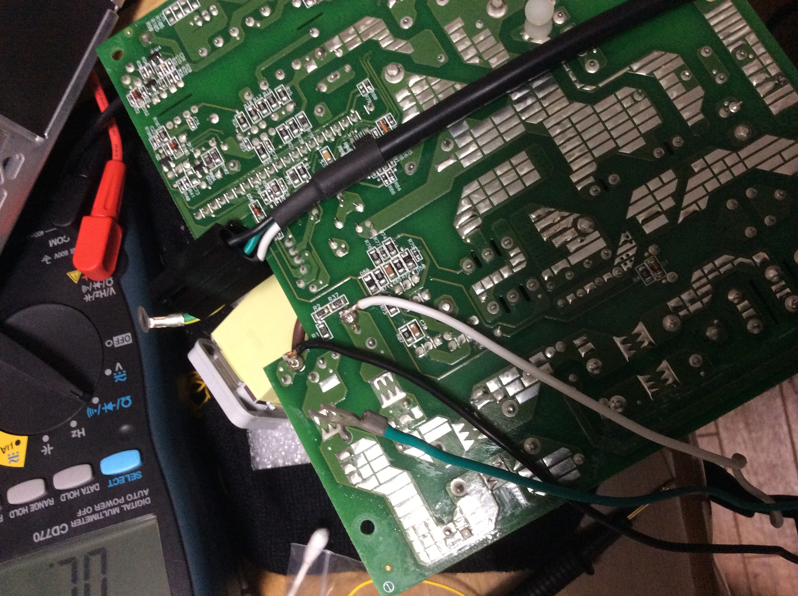 I'm little confused here. I know the 3 top from power supply is different they are 12v (yellow) normally it should be down but isn't. The question is Will work the new one (black cables) in 8 pin mode with that bridge standard ground ground? The resistence and the condensor are confusing me anyway i checked the continuity