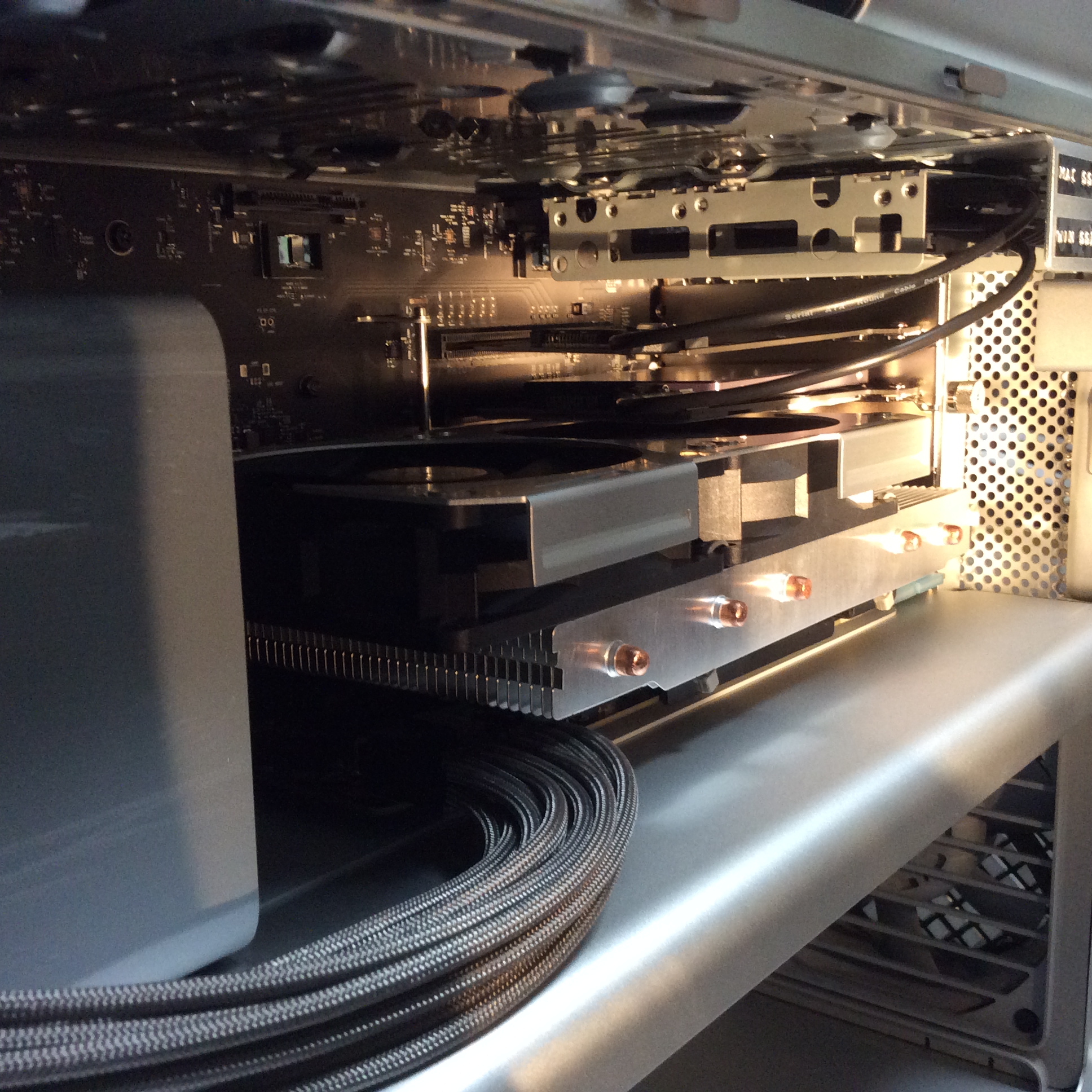 I have modded the GPU cooler as well, with custom fans and custom cooler, the GPU becomes very quiet and is cool all the time (I am at 27-32 dB under heavy load, measured at 1.5 meter from my MAC).