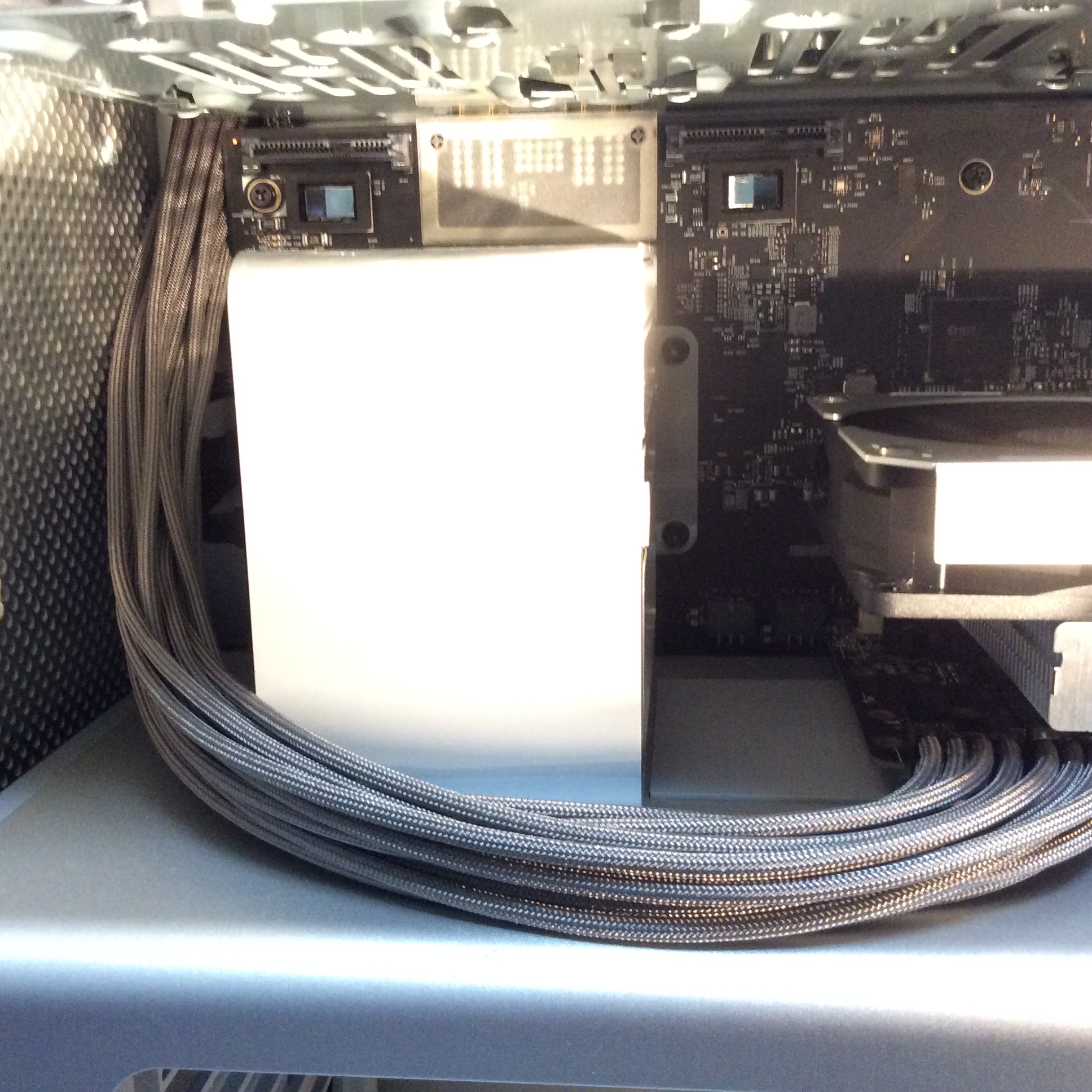 Just want to share with you, you can also use customize PCIE/Sata cables and add SSDs. Below is my config. I added the AUX power and followed the thread below. It is an awesome post (you should check it out).