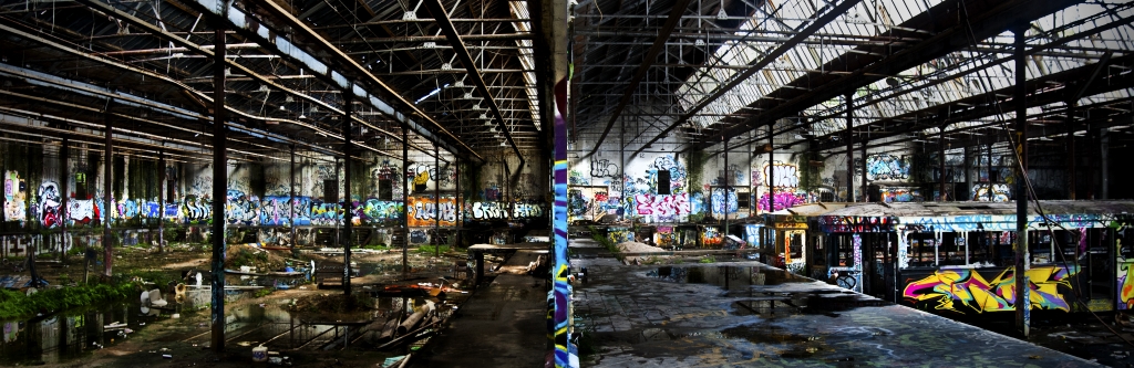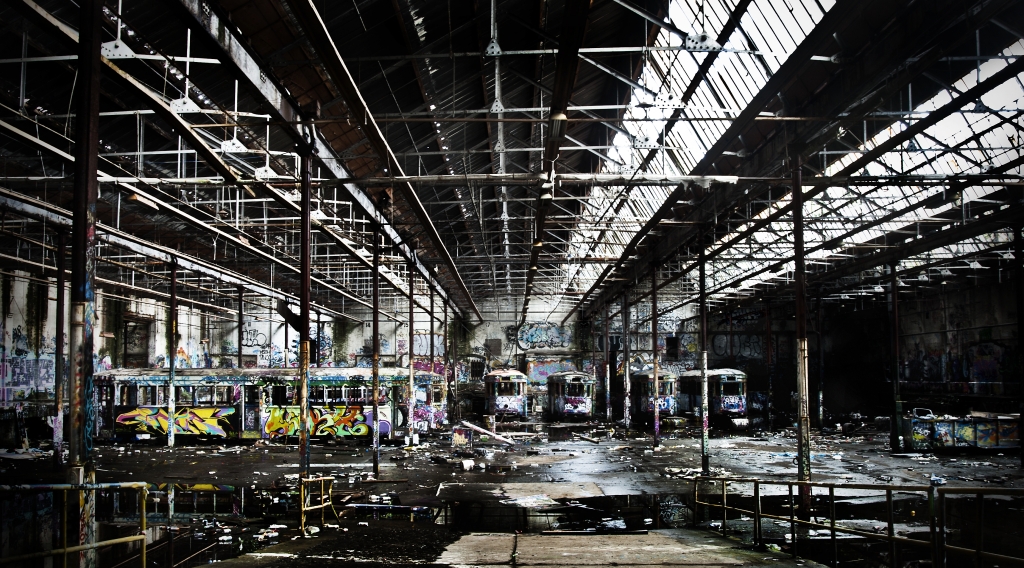 Abandoned tram sheds in Australia. They're two separate rooms that I've merged together into a "panorama".