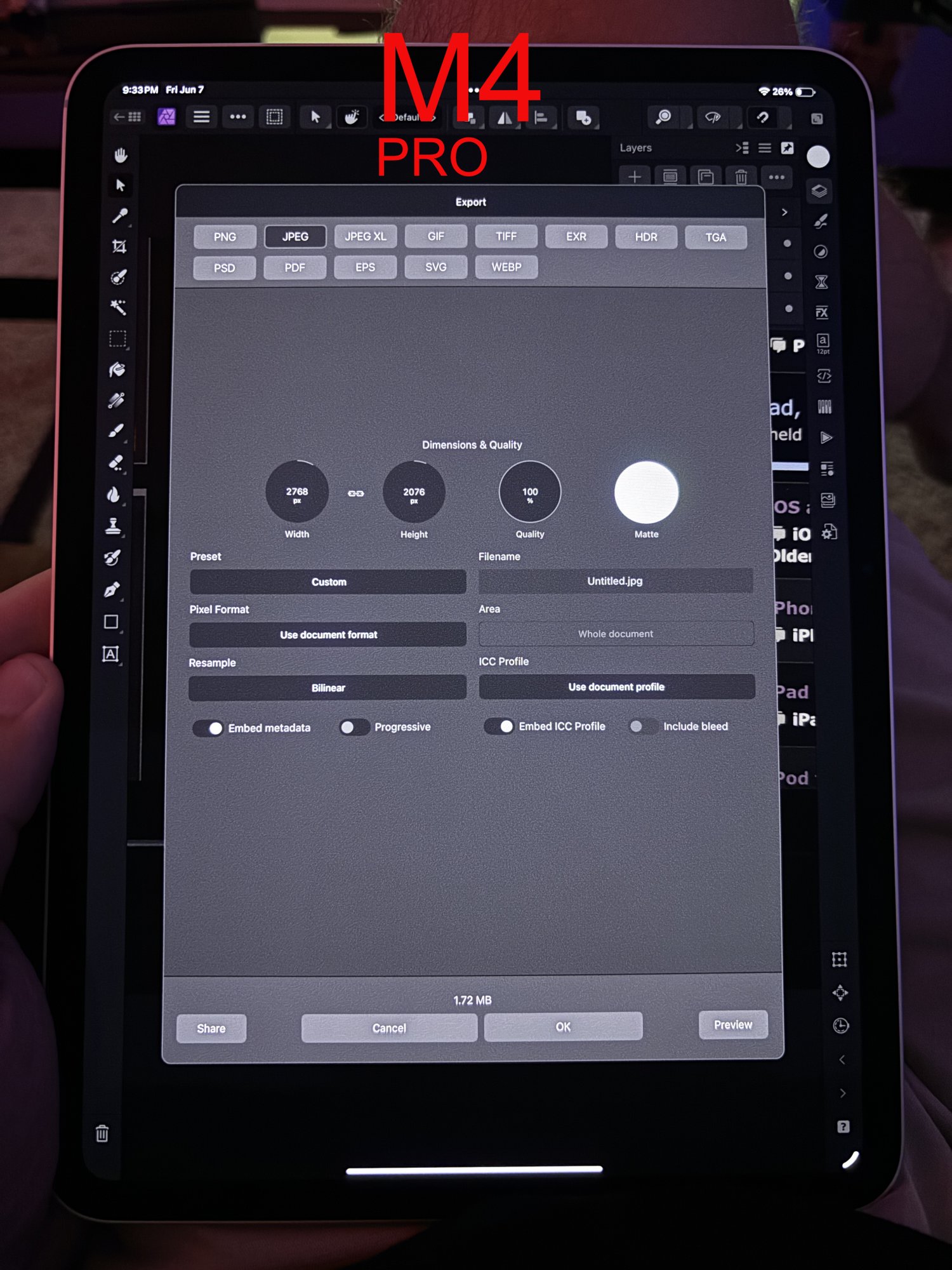 Screen. Like everyone who notices it states….It’s most noticeable at 25 percent brightness on a medium grey background in a darker room. It progressively gets better toward 50% and nearly imperceptible after that. This is holding it a little over a foot from my face. This definitely seems like a display tech downfall of OLED. Otherwise the display is very nice as far as color and HDR(though HDR is kinda over the top I wish there were settings). Still deciding if $1500 (512gb, new pencil and cover+ tax) is worth having this fault with the display tech. It’s not a trivial issue. Grain is very noticeable in other apps like weather at night. Even while gaming, browsing X. This isn’t trivial. To those who don’t claim to have grain…you seem to either not notice it or aren’t using your display in a dark room on lower brightness. Seems like every display has the grain to some extent.